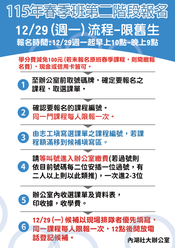 news2025-12-26 18:47:412025-12-26 18:47:41【報名資訊】115年春季班12/29現場報名流程
