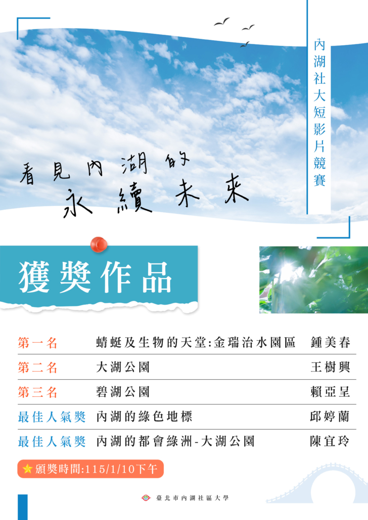 【得獎公告】「看見內湖的永續未來」短影片得獎通知