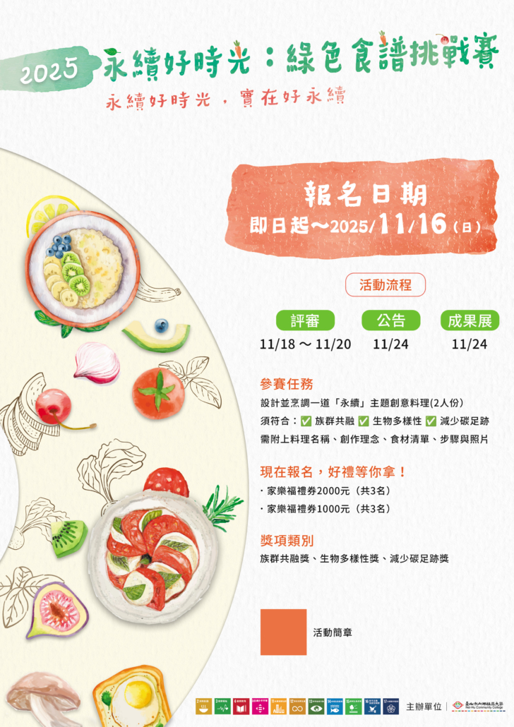 【歡迎報名】2025永續好食光:綠色食譜挑戰賽