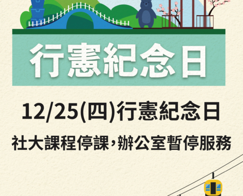當日社大課程停課、辦公室暫停服務