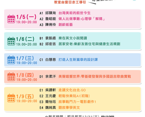 課程體驗日期:115.01.05(一)~01.09(五)